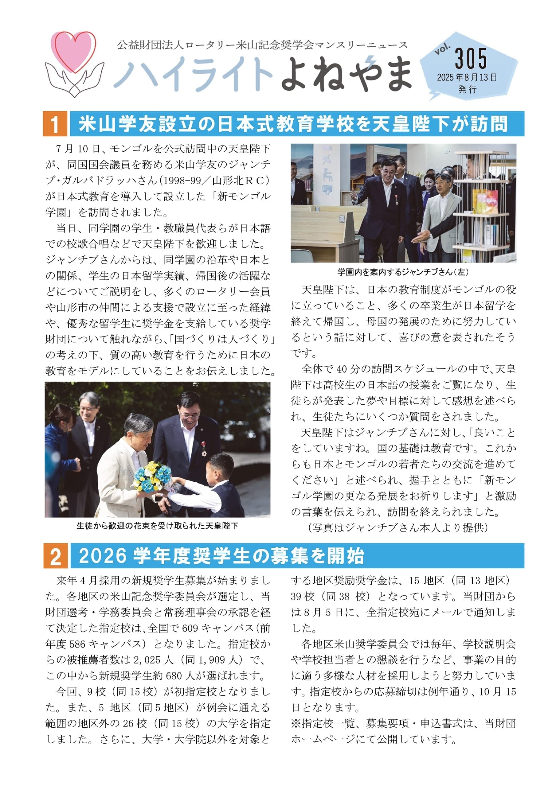 公益財団法人ロータリー米山記念奨学会マンスリーニュース ハイライトよねやま vol.305を掲載しました。下記画像をクリックすると、PDFファイルをご覧いただけます。
